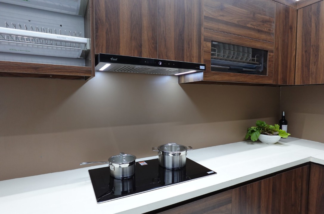 Nguyên tắc vàng: Máy hút mùi nên rộng hơn bếp từ 5–10cm