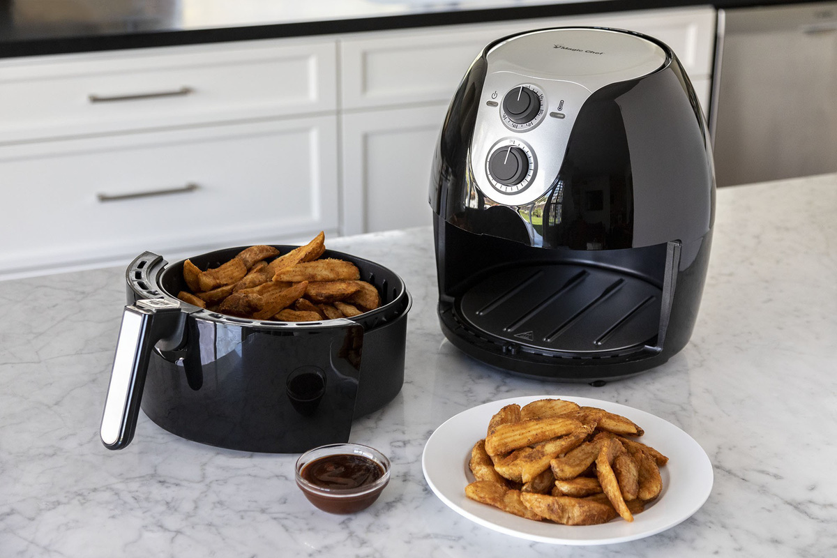 Nồi chiên không dầu hoạt động bằng cách luân chuyển không khí nóng xung quanh thực phẩm để tạo ra một lớp vỏ giòn bên ngoài, từ đó dẫn đến phản ứng Maillard xảy ra giữa một axit amin và một đường khử khi có nhiệt. Quá trình này sẽ dẫn đến sự thay đổi màu sắc và hương vị của thực phẩm.